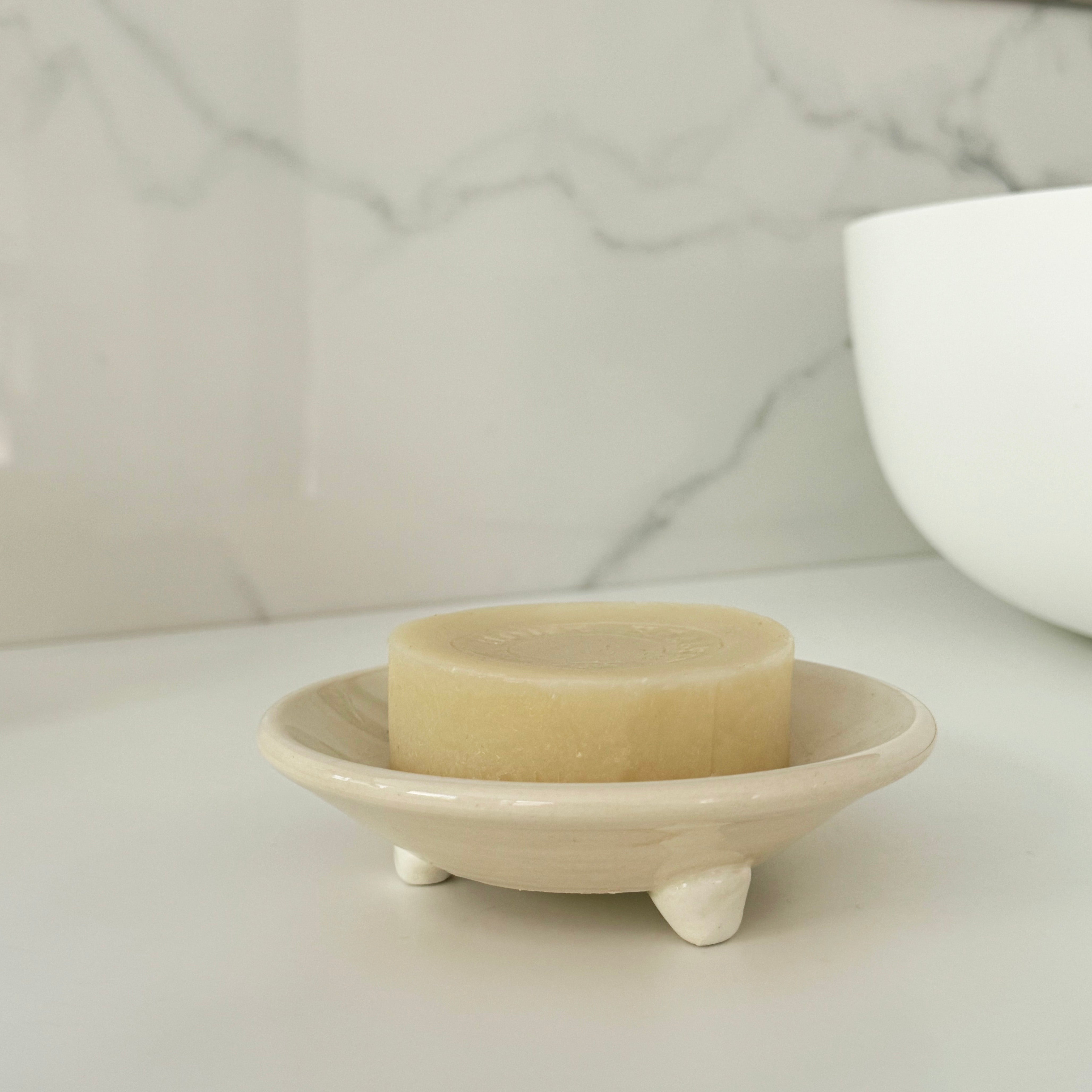 Limited edition round soap dish, handcrafted in earthenware by Casa Tica exclusively for Home Healthy Home. Potters from Lagartera, Puente del Arzobispo and Talavera de la Reina who, generation after generation, since the 17th century, have finally managed to be declared Intangible Heritage of Humanity by UNESCO. A design that is born from childhood memories, of the smell of the countryside, flowers and landscapes. A perfect design to keep our soaps dry, improving their durability.