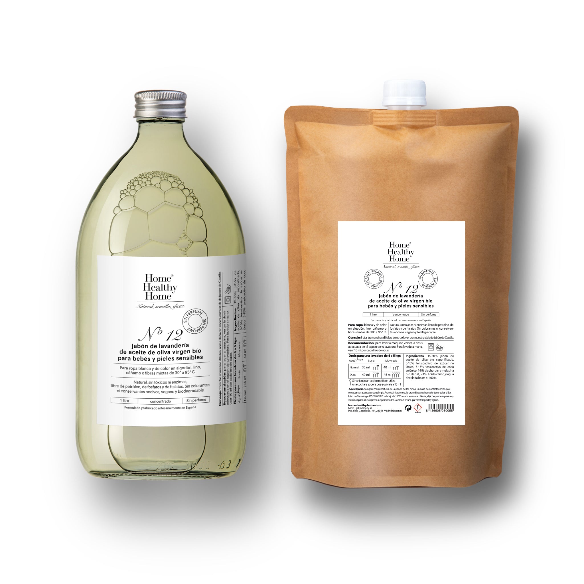 Natural laundry soap, ideal for sensitive skin, baby clothes, and children's clothing. Suitable for white and colored clothing made from cotton, linen, and blends, from 20°C. Highly effective: removes dirt and bacteria while preserving color. No fabric softener needed. Formulated with organic Spanish olive oil soap, free of enzymes, GMOs, microplastics, petroleum derivatives, and preservatives, it's vegan, biodegradable, and fragrance-free. Suitable for hand washing and HE washing machines.