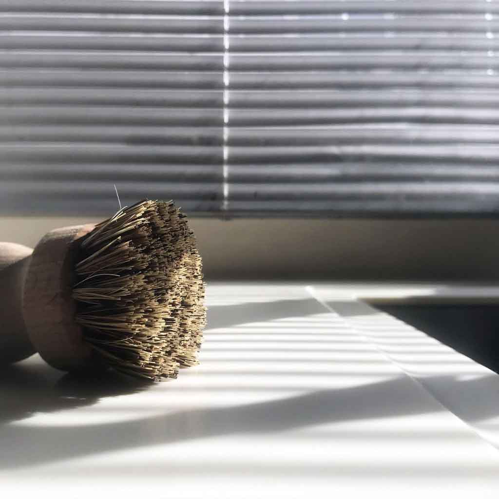 Natural untreated beech wood brush with 100% vegetable fiber bristles. Biodegradable. The best solution for cleaning your pots and pans.